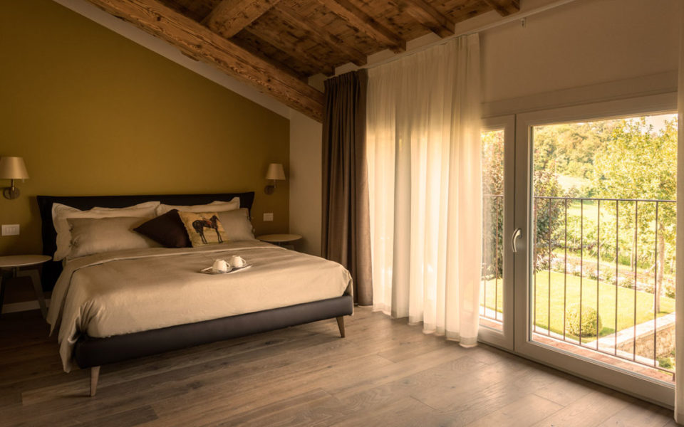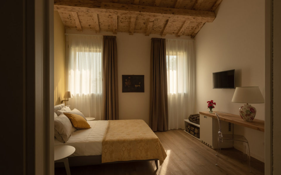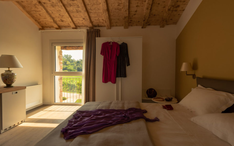 Ampia camera al piano primo di 22 mq, mansardata con travi a vista, si affaccia sul sorprendente panorama della campagna sottostante. Dotata di un comodo letto matrimoniale.